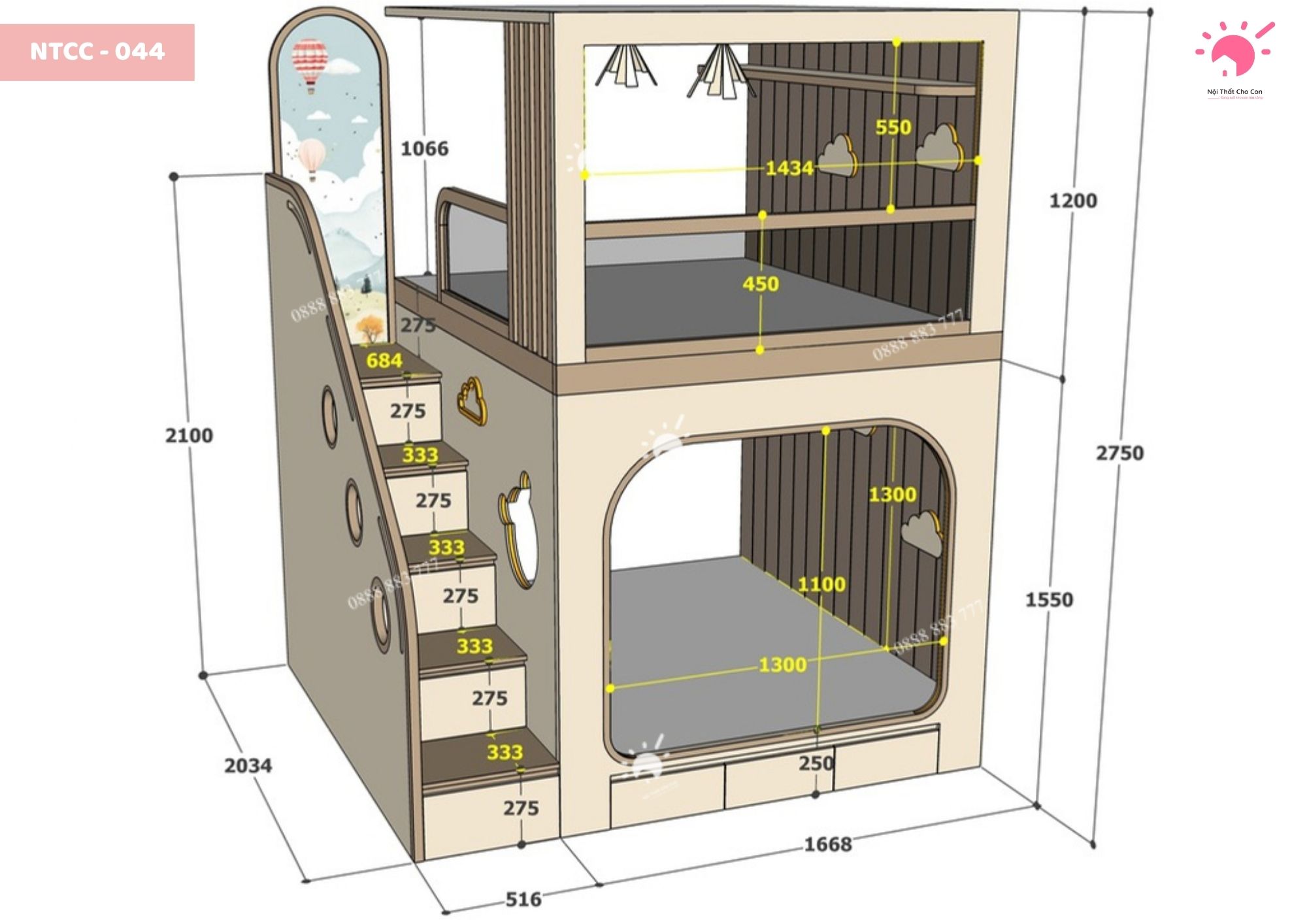 Giường tầng trên dưới GT044